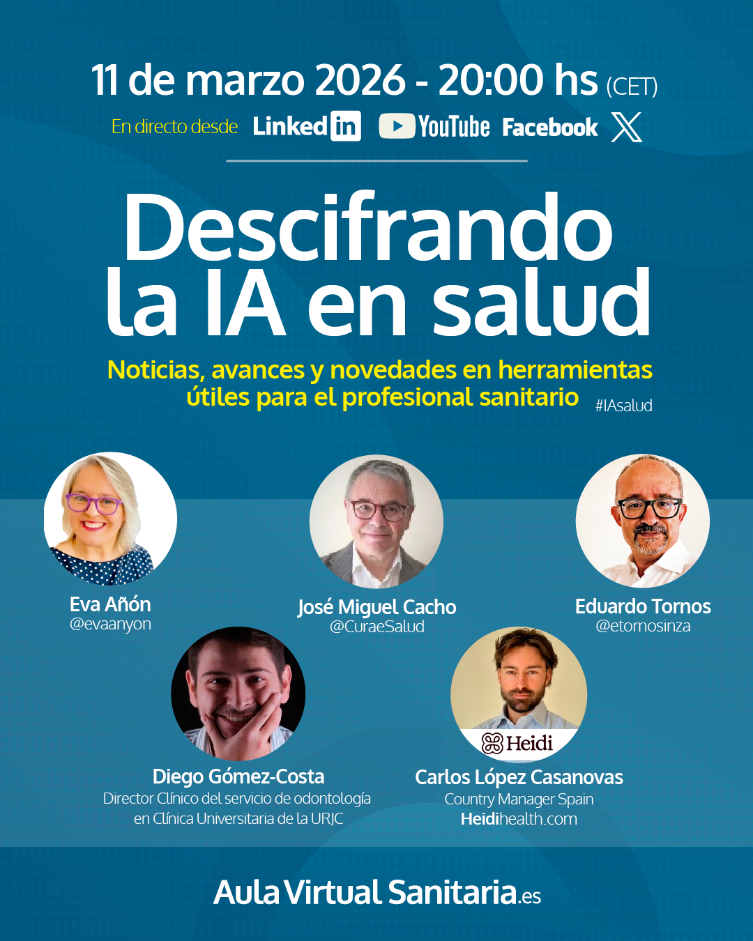 Con Eva Añón, José Miguel Cacho, Eduardo Tornos y nuestros invitados especiales Diego Gómez-Costa Director clínico del servicio de odontología en Clínica Universitaria de la URJC y Carlos López Casanovas, Country Manager Spain Heidihealth.com
